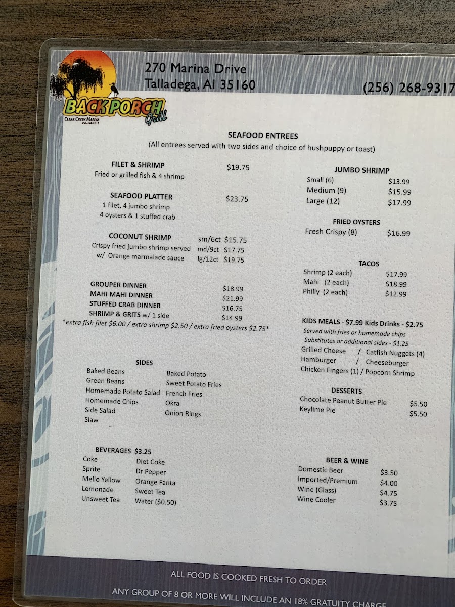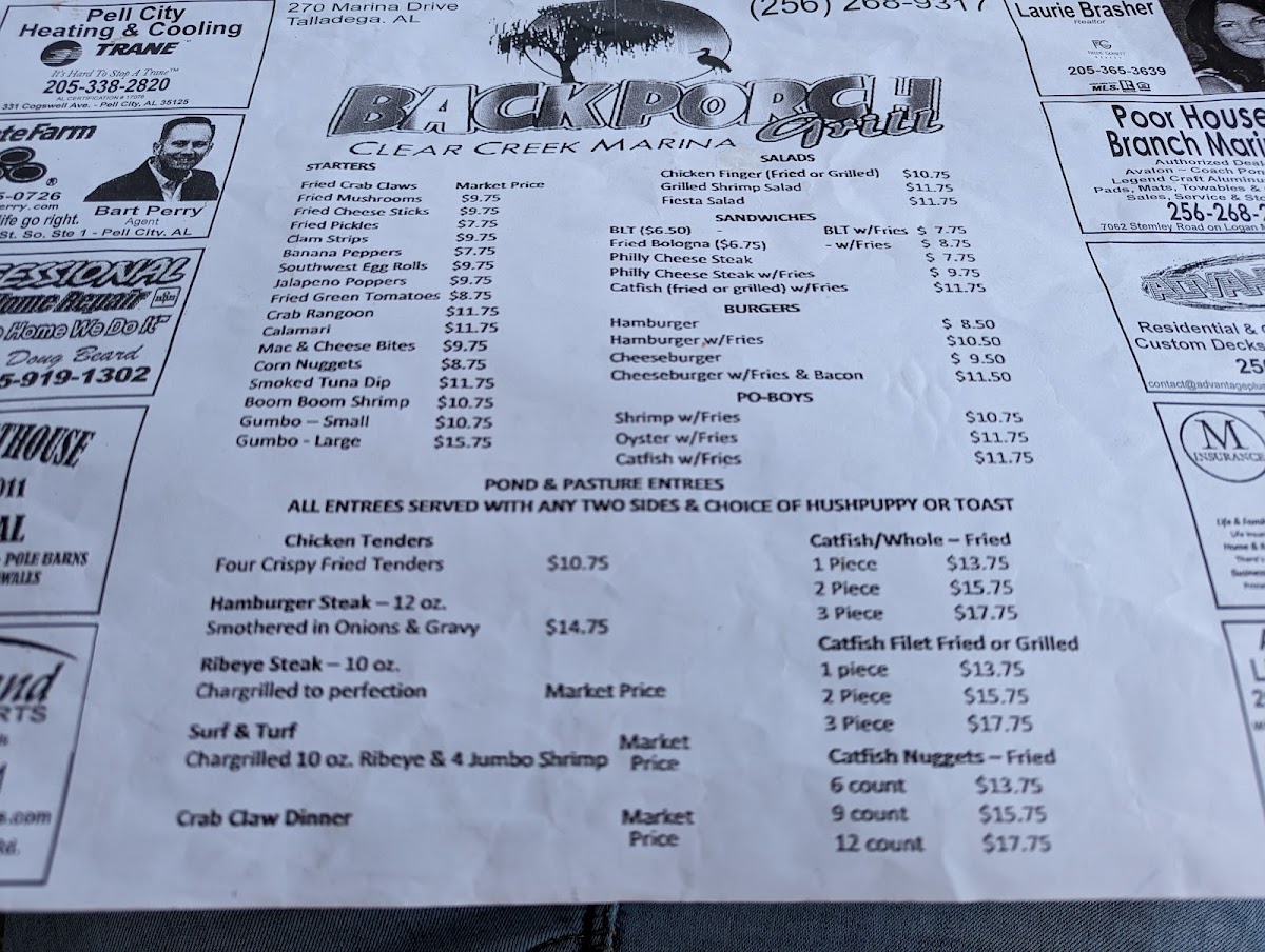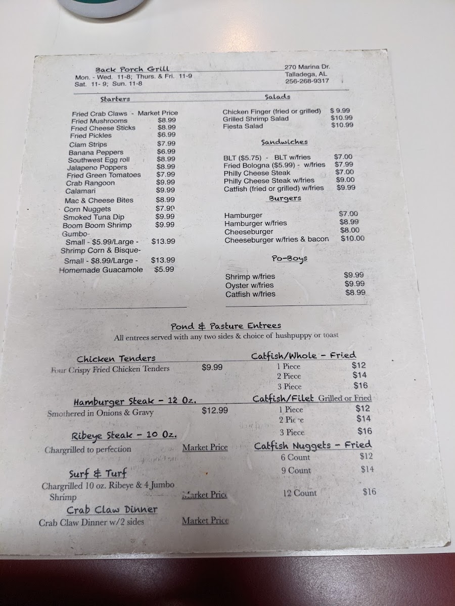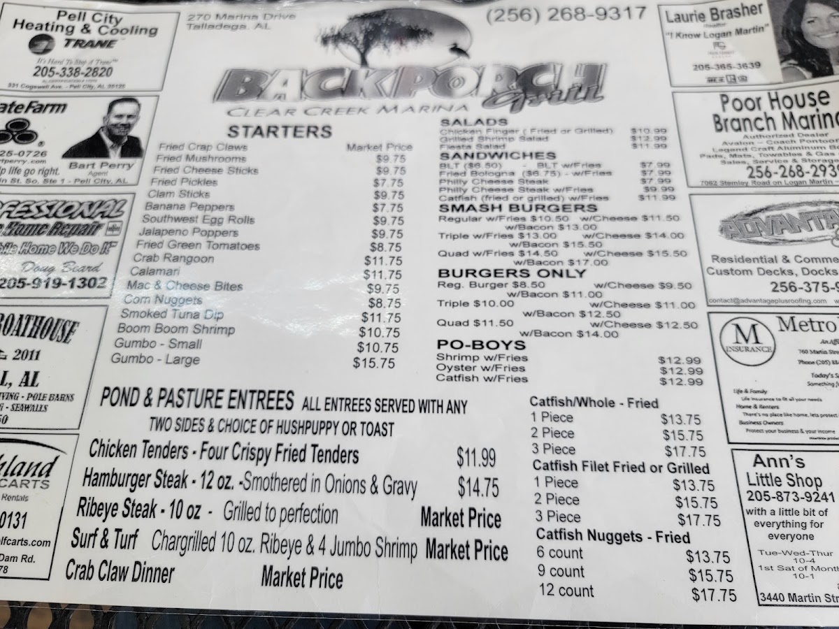 Welcome to The Back Porch, a delightful bar and grill nestled along the serene shores of Logan Martin Lake in Talladega, Alabama. This charming eatery is celebrated for its inviting atmosphere and diverse menu, perfect for families and casual diners alike.