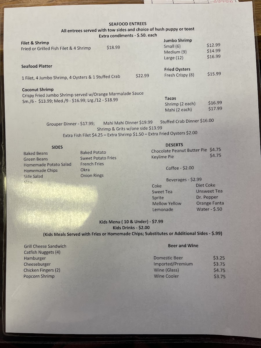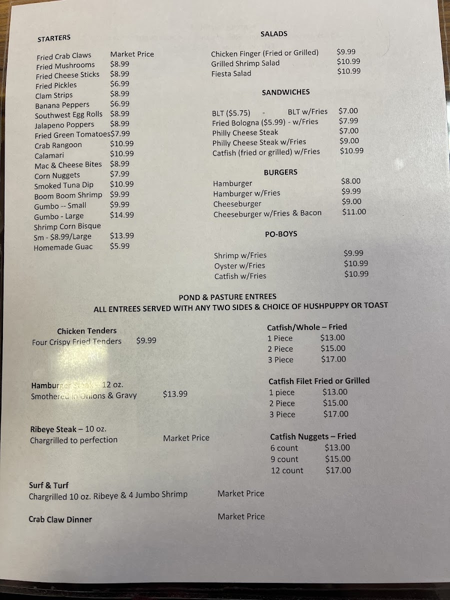 The menu features an array of mouthwatering options, from fresh salads, such as the Grilled Shrimp Salad and Fiesta Salad, to hearty sandwiches and burgers, including the classic Cheeseburger and Philly Cheese Steak. Seafood lovers will revel in the Seafood Platter and expertly prepared Fried Oysters, all highlighting the freshness that patrons rave about.